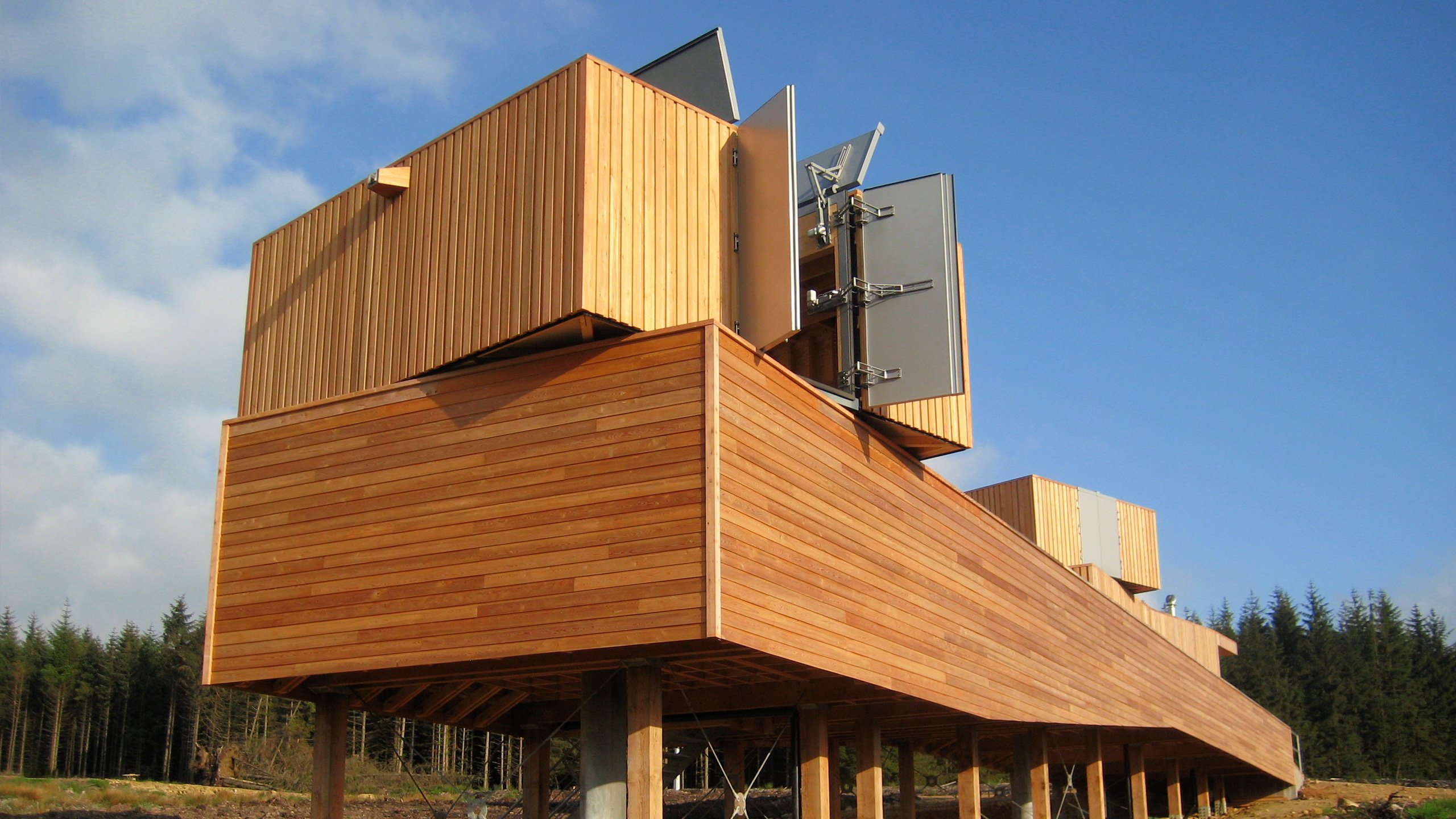 This building was the winner of a RIBA competition held in 2005 that attracted over 230 entries. The site, on Black Fell in the Kielder Forest, was chosen for its remoteness and lack of light pollution.