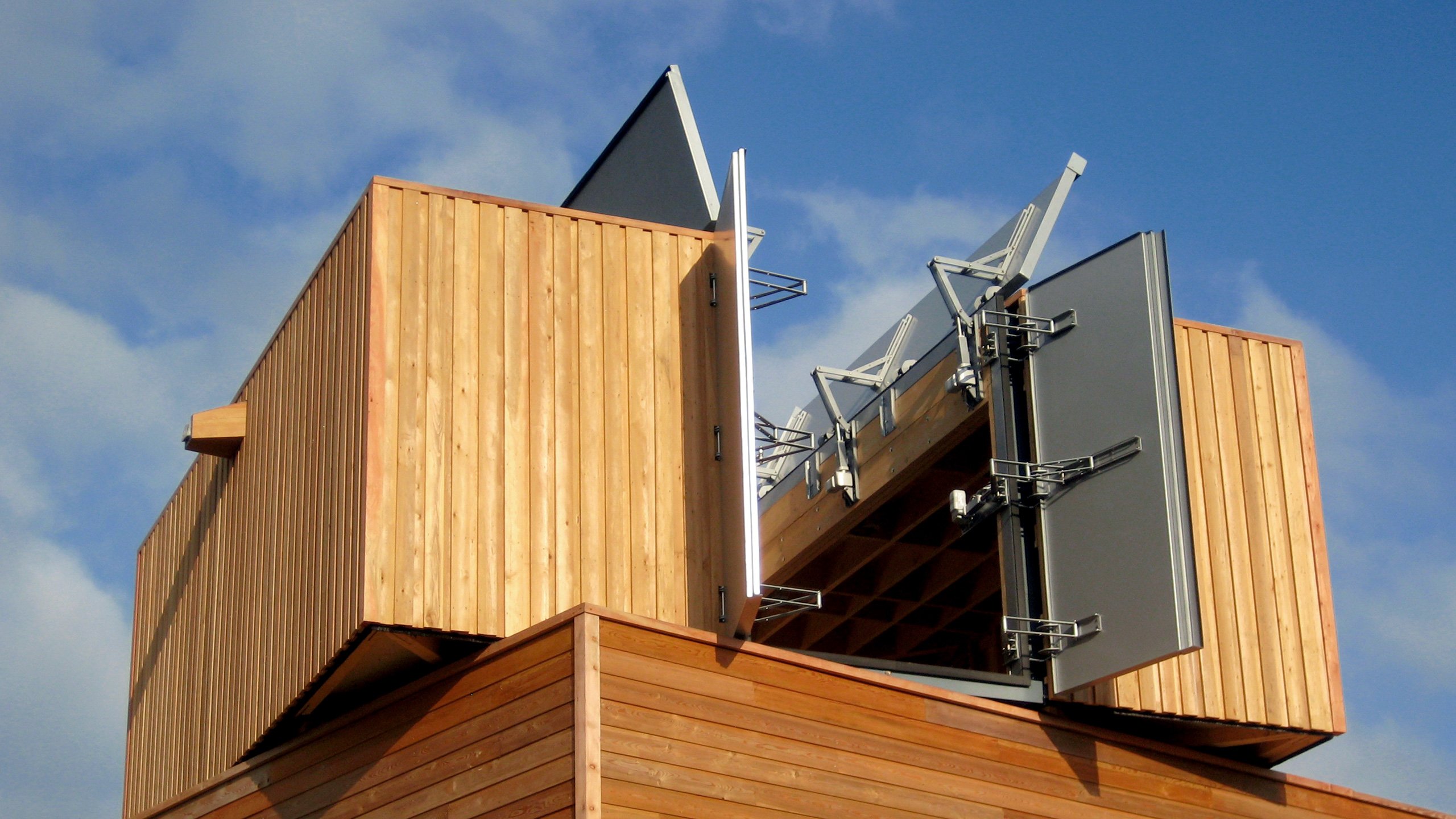 The all timber structure comprises a braced frame beneath floor level. The super-structure incorporates stressed-skin panels to achieve large roof overhangs and cantilever portions of the rotating turrets. The building is autonomous for all servicing needs: power is generated by a wind turbine and photo-voltaics; there is a wood-burning stove to provide heat; and the toilet is composting.